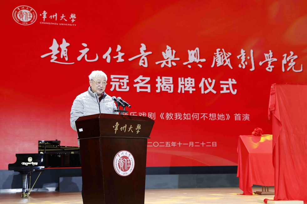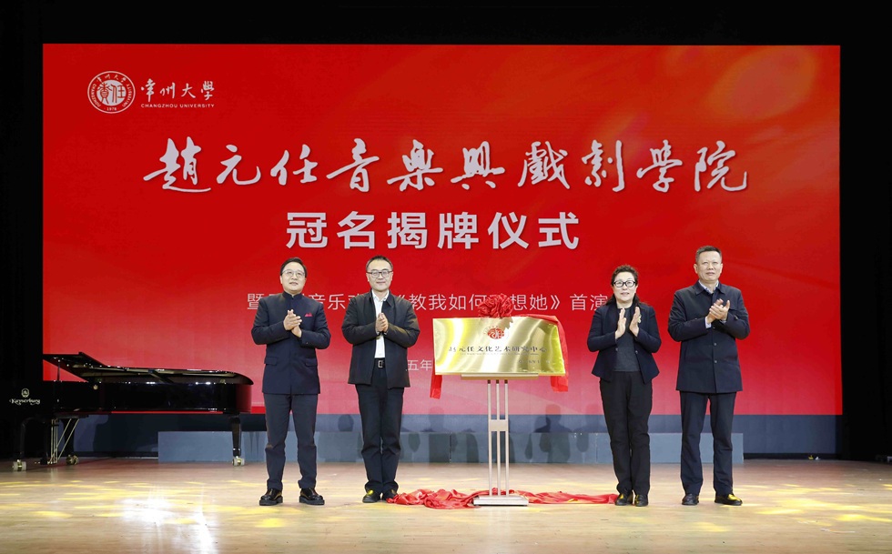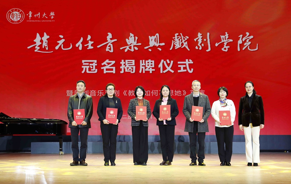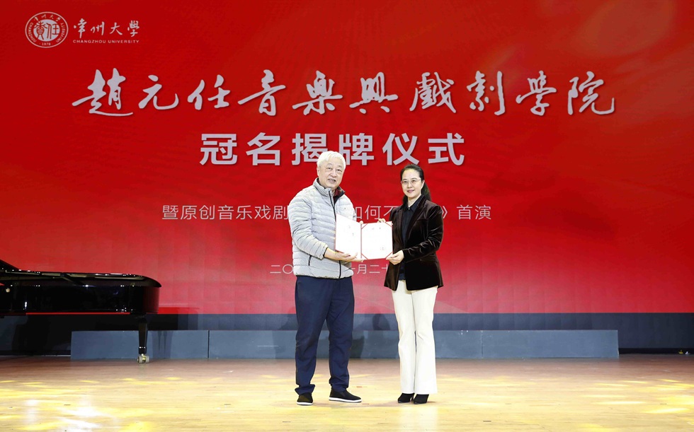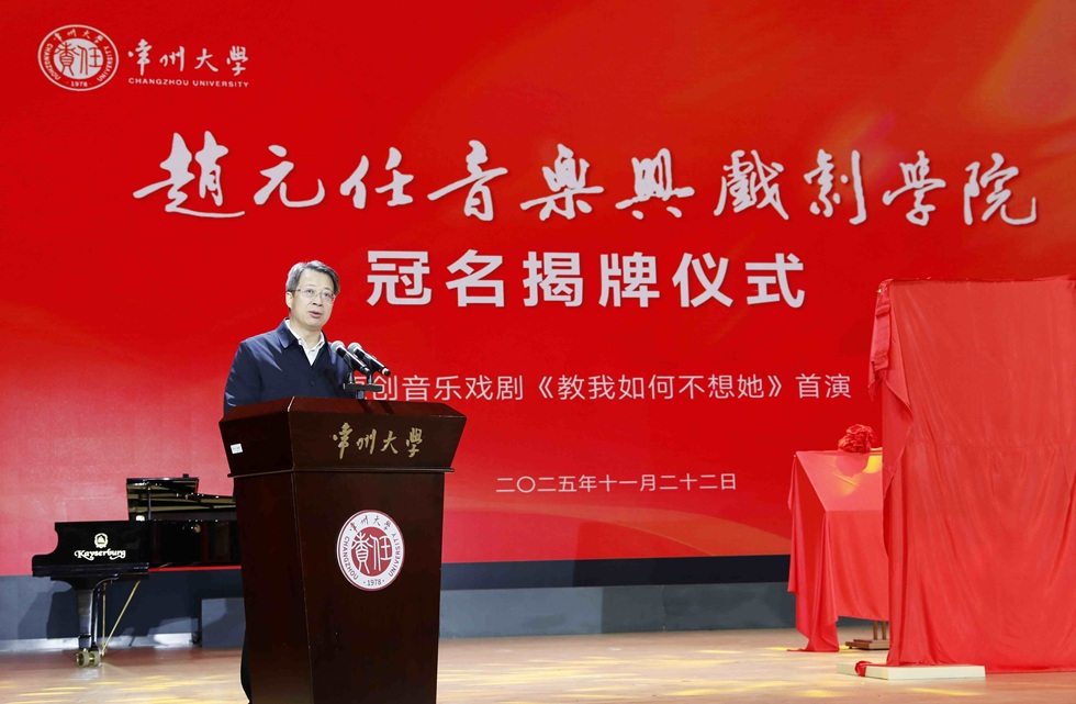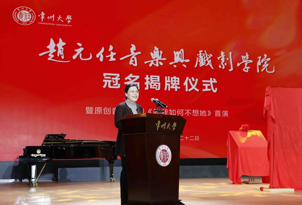 11月22日,赵元任音乐与戏剧学院冠名揭牌仪式暨原创音乐戏剧《教我如何不想她》首演在西太湖校区礼堂举行。赵元任先生外孙黄家林教授,常州市委常委、宣传部长陈志良,江苏省教育厅体育卫生与艺术教育处二级调研员王红蕾,清华大学艺术教育中心主任赵洪,常州市委宣传部副部长谢春林,常州市文学艺术界联合会党组书记、主席沈玉俊,常州市委宣传部办公室主任魏火军,江苏晋陵文旅发展集团有限公司董事长苏刚,内蒙古自治区教育厅美育指导委员会秘书长张卉,上海市学校体育与艺术发展评估中心常务副主任张欢,常州大学党委书记徐守坤,常州大学党委副书记黄海燕,常州大学党委常委、副校长杨琳出席仪式,常州市和武进区相关部门领导、上海音乐学院及省内兄弟院校音乐学院的领导和专家、学校相关职能部门和相关学院领导、赵元任音乐与戏剧学院全体师生等齐聚一堂,共同见证这一重要时刻。仪式由校党委副书记黄海燕主持。