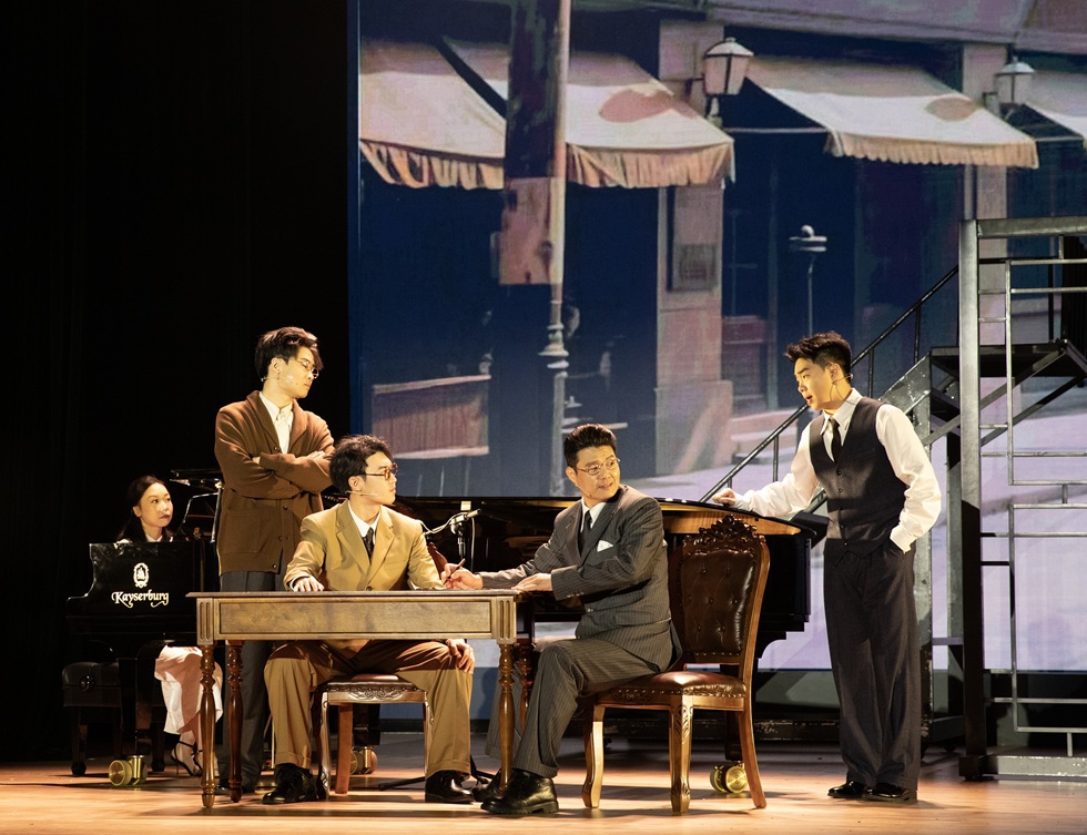 《教我如何不想她》以赵元任先生的人生轨迹为线索,通过“微风吹”“银月夜”“落花游”“映残霞”四幕,生动再现了他从少年求学到海外留学,从语言研究到音乐创作,从情感抉择到家国情怀的丰富人生。剧中融合了赵元任先生谱写的经典艺术歌曲《教我如何不想她》,并巧妙运用吴语变奏、民乐伴奏等手法,营造出浓郁的时代氛围与情感张力。赵元任先生作为“中国现代语言学之父”、现代音乐学的开拓者,他不仅在学术上成就卓著,更在音乐创作中融合中西、贯通古今,为中国现代艺术歌曲的发展奠定了坚实基础。话剧通过他与刘半农、胡适、杨步伟等重要人物的互动,展现了他作为学者、作曲家、丈夫与爱国者的多重身份,也让观众深刻感到“她”不仅是具体的人,更是故乡、友人、爱人与祖国的象征。同样在人物塑造上也浓墨重彩地呈现了刘半农先生的人物形象——作为五四新文化运动的猛将、著名诗人与语言学家,他性格率真、幽默豁达,富于探索精神。剧中通过“数人会”研讨、巴黎初识、共同创作《教我如何不想她》等情节,淋漓尽致地展现了他与赵元任之间“珠联璧合”的深厚友谊,以及他为创立“她”字而展现出的文化勇气与学术担当。