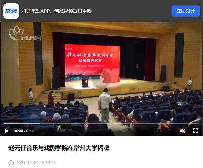 常州电视台:赵元任音乐与戏剧学院在常州大学揭牌