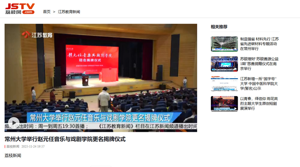 江苏教育新闻:常州大学举行赵元任音乐与戏剧学院更名揭牌仪式