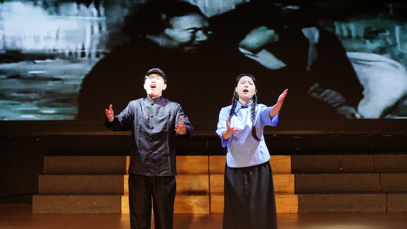 党课尾声,李兆麟、周保中、赵尚志、赵一曼等抗联英烈的名字逐一被提及,他们用生命践行信仰的壮举让在场党员热泪盈眶。随后,课堂聚焦“左翼音乐联盟”的红色力量,介绍聂耳、田汉以音乐为武器唤醒民众的革命历程。当《义勇军进行曲》的前奏响起,全体党员起立合唱,“起来!不愿做奴隶的人们!”的呐喊响彻演艺厅,将现场氛围推向高潮,也为本次音乐党课画上圆满句号。