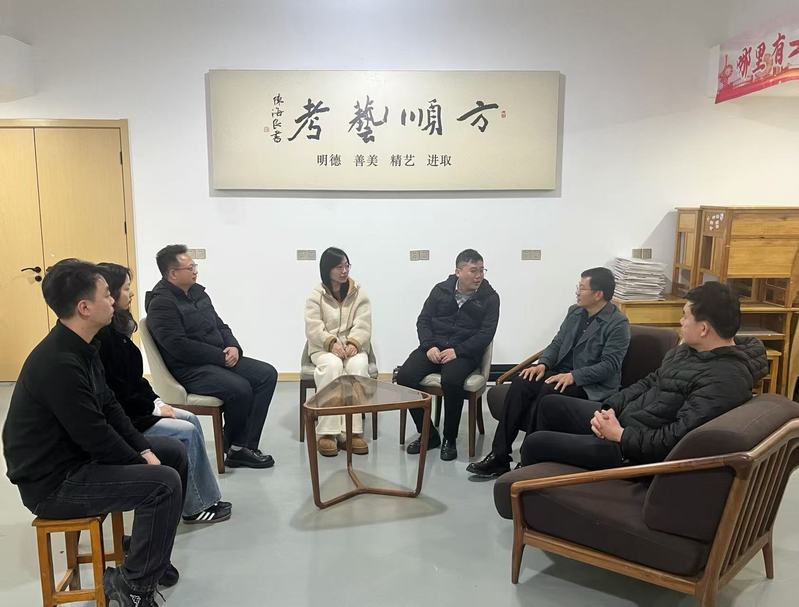 走访期间,学院一行在单位负责人的陪同下,实地参观了企业的办公环境、排练厅、教学场地,详细了解了企业的发展历程、业务领域、人才需求以及未来的发展规划。在随后的交流中,褚衍松向企业介绍了学院的专业设置、办学特色、人才培养模式以及2026届毕业生的基本情况。他表示,学院始终坚持“立德树人”根本任务,致力于培养专业基础扎实、实践能力突出、具有创新精神的高素质艺术人才;开展“访企拓岗”专项行动,不仅是拓展就业岗位的迫切需要,更是学院深化教育教学改革、了解行业前沿动态、优化人才培养方案的重要契机;希望通过此次走访,能够进一步打通学校与用人单位的沟通壁垒,在实习实训、项目合作、艺术创作、人才输送等方面建立长效合作机制。