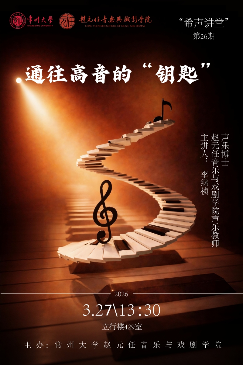 3月27日下午,“希声讲堂”第二十六期在立行楼429教室顺利开讲。讲座由学院声乐教师李继祯主讲,主题为《通往高音的“钥匙”》,学院声乐专业学生及教师共同参加学习。