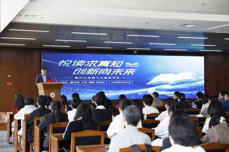 4月24日下午,常州大学第十六届读书节在西太湖校区启动。党委常委、副校长杨琳出席活动并讲话。工会、学生处、团委及相关学院负责人出席活动,师生代表等200余人参加活动。图书馆负责人侯新兵主持启动仪式。