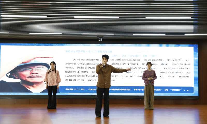 启动仪式上,我院表演241班屠心语、王靖仪、吕小龙、牛婉婷带来的第十五届读书节优秀作品——朗诵表演《以星光火炬,赴时代之约》,讲述黄令仪、南仁东、何泽慧等科学家攻坚克难的感人事迹,激励青年勇担使命、逐梦前行。